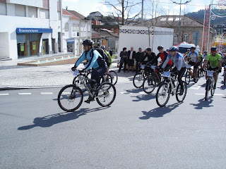 A culminar uma semana de chove não chove tivemos afinal uma benesse do Santo da meteo, eh eh eh… isto apesar de o céu ter desabado no sábado, o domingo esteve impecável para os lados da Póvoa de Lanhoso. Com uma participação maciça do BTTBERÇO, o VI Maria da Fonte decorreu com uma temperatura amena e um azul manchado com brancos e cinzentos estampado por cima dos betetistas. Desculpem-me a veia poética (rasca) mas o contraste com o verde e amarelo do tojo e das giestas estava simplesmente lindo. Lindo também estava o piso, com aquelas chuvadas do dia anterior… não bastava já a dureza (lendária) do percurso, tinha de se lhe juntar a lama e um terreno pesado que parecia que puxava para trás! Deixou marcas nalguns elementos (eu e o Lopes padecemos de algumas cãibras nas pernas e o Coelho foi cãibras nas tripas). Realce para a bike que a loja X emprestou ao Barinho (Cannondale Rz topo de gama) teve que ir a polícia a casa dele porque ele não a queria devolver, eh eh eh! Eu e o Machado resolvemos ir e vir de bike, pelo que, no final do passeio, enquanto todos morfavam um prego e bebiam umas bejecas, nós sofríamos, hum, a rever… todos gostaram do passeio que, como já nos habituaram, teve uma organização e um percurso 5*****. Muita dureza, cheguei a casa com 79 kms e 1650 mts de acumulado positivo. Finalmente, uma palavra de apreço para o Machado que no fim ainda foi para o voleibol e ainda foi de bike pra casa às 18h. Ufa…