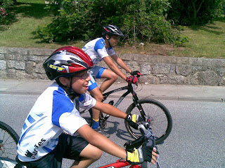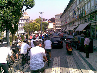 Como estava combinado lá fomos participar na segunda edição do Bike Tour - Guimarães - Dia 1 de Portugal. Muitos foram aqueles que como nós também se quiseram juntar ás comemorações do Dia 1 de Portugal. Os cerca de 20 km pelas estradas do concelho correram bem e dentro do que a organização tinha planeado. Muitas foram as caras conhecidas presentes no evento assim como os diversos grupos de BTT e Estrada da nossa cidade. No que ao nosso grupo diz respeito tivemos uma estreia, a do Ricardo André, filho do Lopes que esteve muito bem. De resto erelativamente ao sorteio final de alguns prémios saiu ao grupo a única "Ginga" que constava do referido sorteio. Uma palavra para a organização da ACM na pessoa do seu presidente José Luís Ribeiro e restante equipa pelo excelente trabalho. Para o ano prometemos estar presentes para mais uns momentos de excelente convivio.